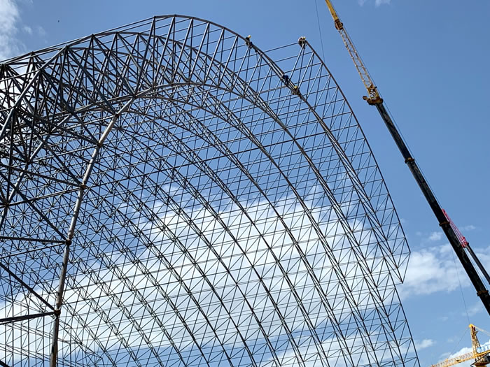 (2)网架加工前应对现场尺寸进行复测,确认无误后方可进行加工、安装;网架制作、运输、安装应遵守《空间网格结构技术规程》JGJ7-2010、《钢网架汝州螺栓球节点》JG/T 10-2009、《钢网架汝州螺栓球节点用高强度螺栓》 GB/T 16939-2016、《钢结构汝州工程汝州施工规范》 GB50755-2012、《钢结构汝州工程施工质量验收标准》 GB50205-2020。